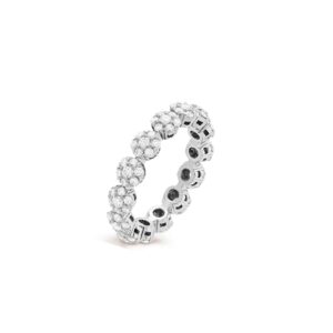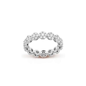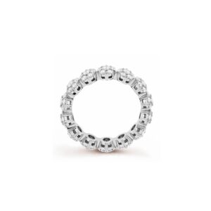 This Van Cleef & Arpels six-in-one row ring interprets timeless elegance through the purest language of diamonds! Six brilliant-cut diamonds closely encircle the central main diamond, shining like stars surrounding the moon, each diamond carefully selected to create a dynamic halo of fire. The platinum ring band feels warm and snug against the finger, with its simple row-set design exuding a sense of sophistication. Whether for daily commutes or formal events, it instantly enhances the overall elegance of one’s appearance.