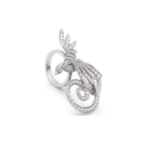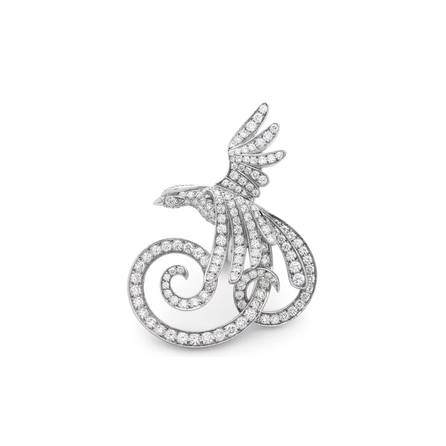 This Van Cleef & Arpels phoenix full-crystal ring transforms the mythological immortal bird into an everlasting brilliance at the tip of your finger! The fiery wings are intricately set with countless fine diamonds, with each feather shimmering with dazzling light. The central main diamond resembles the fiery heart of the phoenix during its rebirth, and the poised posture seems ready to burst out of the ring at any moment.