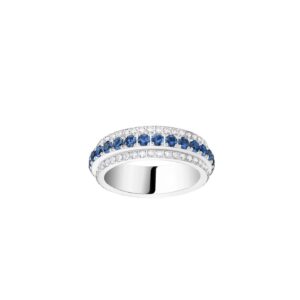 This Piaget Fortuna Gem Ring is a perfect blend of luck and elegance! The iconic rotating inner circle features a dazzling centerpiece stone (available in sapphire, emerald, or ruby), and with just a gentle twist, the gem can be seen moving gracefully within the ring, as if holding good fortune in one’s fingertips. The 18K gold band is adorned with a full circle of fine diamonds, making every rotation sparkle with opulent brilliance!