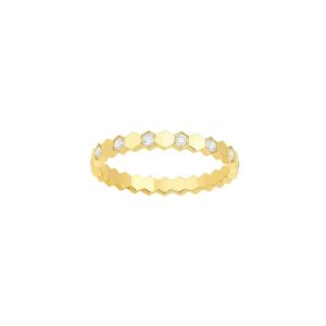 This Chaumet narrow honeycomb ring is the epitome of understated luxury! Inspired by the hexagonal, closely set structure of honeycombs, each small diamond is precisely placed. When it catches the light, it radiates a delicate glow, reminiscent of a dew drop in the early morning light of Paris. The narrow band fits comfortably on the finger, and the 18K gold material is warm and refined, yet exudes a sense of sophistication everywhere!