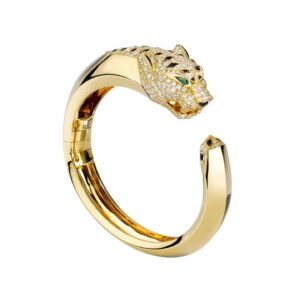 Be the first to review “18k gold natural diamonds leopard-patterned bracelet with a sword-shaped design.”